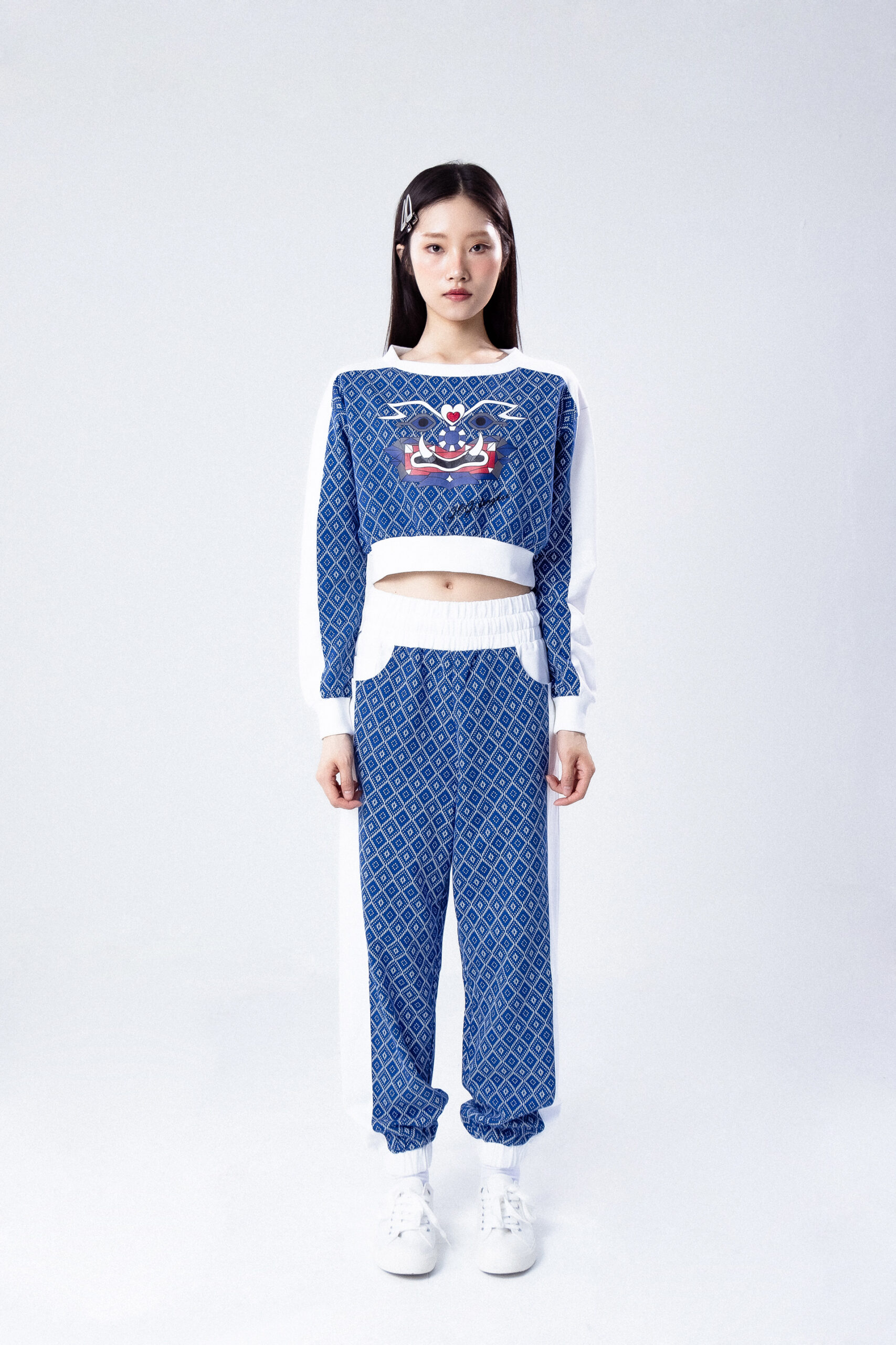 A polo dress made from warp-knit fabric and micro tricot, which is a soft breathable texture, and stays its shape. The details include embroidered and printed “Yak” (giant) designs. The shoulders feature patterns inspired by traditional Thai design the “Prajam Yam or Dok Jan”(Asterisk-like) patterns, which is meaningful in Thai culture. These patterns are commonly found in temples, monasteries, palaces, or any traditional structures. They are believed to offer protection and ward off negativity. As a result, these patterns have become the main inspiration for this collection.